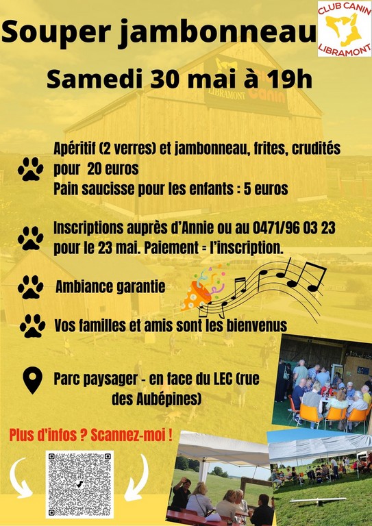 Le samedi 30 mai 2026Souper Jambonneau : ouvert à tous.Pour vous inscrire c'est par ici :